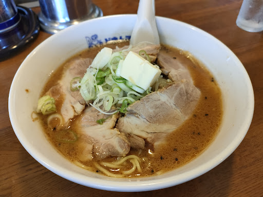 「どさん子大将」の看板を掲げる有名店です。私が子どもの時からあるラーメン店で、山陰道が開通し国道9号線の交通量が激減するなか、変わらず行列を作っております。 私が訪問したのは水曜日11:30で幸いにも待ち時間なしで着席できましたが、お店を出ることには行列ができておりました。客層はサラリーマンもいれば、高齢層も多く、このお店の歴史とファンの多さを物語っておりました。 前書きが長くなりましたが、私は味噌ラーメン(600円)に、追加のチャーシュー(200円)とバター(50円)をトッピングで注文し、合計850円でした。値上がりが当たり前の時代でありながら、破格の値段です。濃く深い味噌スープに、トッピングのバターが加わり、なんとも欲深い味になるのがとても美味しく、完食後の満足感に繋がります。 値上げして構いませんので、この味を長く提...