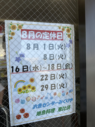 漁港の目の前にある直売所と2階にある食堂です。駐車スペースは周りにたくさんあり、困ることはないです。 12時半頃着き、入口を入って左側に予約表があり名前と人数を記入。10組ぐらいの待ちでした。30分ぐらい車で待って、待ち合い場所に。店員さんが、2階から呼びに来きます。 2階に上がると、レジで注文と番号札をもらうのですが、「暑い中ご来店ありがとうございます」との言葉があり、待って良かった! えびす定食1800円(刺身と天婦羅)を頼みましたが、新鮮な魚をもっと楽しみたかったので、海鮮丼にすればよかったです。 さすがに、魚は新鮮でプリプリでした。刺身はもう少し量があれば申し分ないのですが、茶碗蒸しや小皿は、地元ならではという感じでした。 漁港を目にしながら、涼しい風を受けて食べる昼食は、こ...