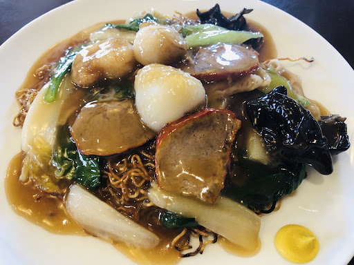 2023年7月に十数年ぶりに訪れました。 日曜日のお昼に訪れ、到着したのが11:55でした。 駐車場はほぼ満車で、停めにくい場所が1台分だけ残っていたのでそちらに停め伺いました。 駐車場は7〜8台くらい停めれそうな感じでした。 満車状態でしたので入口にも並んでいる状態で、入口の予約表に名前を書き待ちました。 それでも10分くらい待ち、店内に案内されました。 今回は五目ソバと海鮮ソバ、チャーハンを注文。 五目ソバは醤油系のあんかけスープにちょっとだけごま油が入ったような感じの味付けでエビやホタテ、イカ、他にも大きめな具がたくさん入っていて、味もちゃんと美味しく食べ応えがありとても美味しかったです。 麺は細麺でスープがよく絡み、それがまた食べやすく美味しく感じました。 海鮮ソバの方は塩ベースのあんかけで、こちらも五目ソバと同じような感じでした。 たぶん、味付けの違いだけかな?という印象でした。 チャーハンは味付けが薄いような感じなのですが、しっかりとした味があり、食べていても全然飽きずに最後まで美味しく頂けました。 今度はまた違うメニューを食べに...