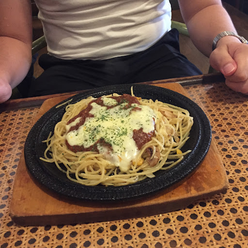 さて、今回のオーダーはミートソースチーズ焼き、焼肉ピラフ、チーズドリア。 ドリアは小さめ、パスタとピラフは大盛りサイズ。ということで、パフェも食べる方はフードの大きさ要注意!