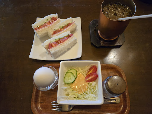 Read more病院の待ち時間に、暇を潰せるものがなかったので本でも読もうと入りました。 客層は色々で、一見さんでも入りやすい感じの喫茶店でした。 ラジオがかかっていて静かすぎなくて居心地よかったです。 普段コーヒー飲まないけど、アイスコーヒーが美味しかったし、モーニングのサンドも美味しくて、...
