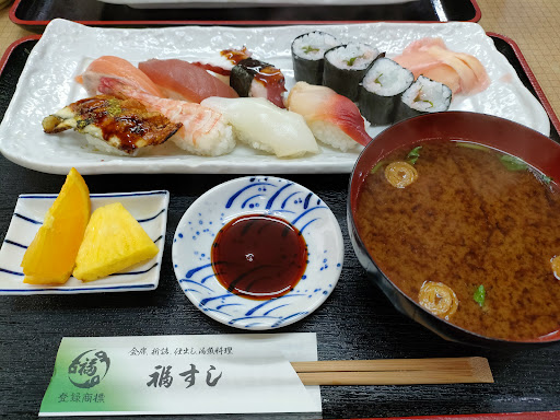 Read more初めて訪問させていただきました。 ランチで魚が食べたいと言う事で見つけたお店ですが、当たりでした。 車はお店の隣と道路を挟んだ向かい側に駐車場があります。 入店すると温かいお茶と冷たいお茶を聞いていただけます(地味にこれ良いですね) お寿司定食(900円)をお願いしましたが、手際よく作っていただき、待ち時間も少なかったです。ネタは値段的に仕方がないと思いますが、味は十分美味しいものでした。個人的にはイカの細巻が絶妙でした。 そうそう、ここのお店ではお漬物ではなく、梅干しが壺で提供されていますが、この梅干しが美味しいです。 この地域に行くことがあまりないので評価は標準としてますが、近くに行くことがあればま...