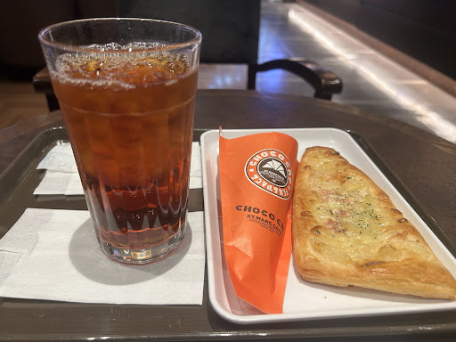 Drinks are standard fare. This chain is known for it's chocolate croissants but also offers light meal sets in the form of sandwiches or pasta. Also parfaits as dessert.