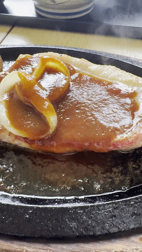伊達で、ランチの美味しいところを探してこちらにしました。 みなさんポークチャップを頼んでいたので自分はポークチャップを注文。 natuさんは天丼を注文 そして、こちらのビーフシチューが美味しいとのことで、ミニサイズがあったのでそれを注文。 まずは天丼が来ました。 天ぷらがサクサクで、海老は中がふわふわで衣はサクサク味も美味しかったです。 次に、natuさんのおすすめビーフシチュー。 こちらは過去にnatuさんが食べたことがあるようでおすすめでしたが、単品セットは少々予算オーバーだったので2人で半分にしました。 めちゃめちゃお肉が柔らかく、シチューも味が濃いのではなく濃厚でとても美味しかったです!。 ポークチャップは、お肉が厚く思っていたより大きかったです!。 そして熱々の鉄板に載せてるので、来た時にはジュージューしてました。 かかってるポークチャップソースは、酸味も塩っ辛さもなく程よい感じのソースで、付け合わせの野菜にかけても美味しかったです。 お肉は柔らかく臭みもなかったので、ご飯が進みます。 次は違うメニュ...