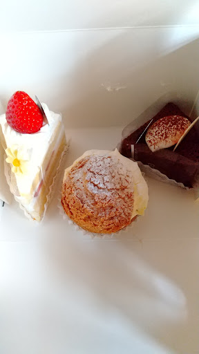 お店は明るくて入り易かった。 入口左、道路側にクッキーとかの焼き菓子が、右側ショーケースにケーキ🍰が並んでました。開店後1時間ぐらいで行ったのでケーキはまだ6種類ぐらいしか並んでいませんでしたが、次々と出来上がるとの事でした。 購入したのは写真左からショートケーキ390円、クッキーシュー190円 テリーヌショコラ390円です。