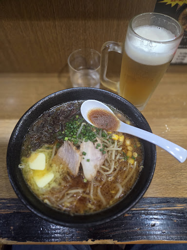 西鉄五条駅近く、13〜14名位のキャパの小規模な店舗です。味噌ラーメンをいただきましたが、麺は18番手位の太麺、スープは、美味しいですが、独自性を感じられる味噌味ではありませんでした。麺は、やや、茹で過ぎ感がありましたが、太麺なので、硬めだと、粉気が気になっていたのかもしれません。メニューは、しょう油、塩のラーメンに加え、ご飯類以外にも、焼鳥、おでん、もつ鍋等、夜の営業を意識した内容で、今日も、12時の開店から、12時30分まで、来店客は、3組、4名で、昼のウエイトは低いのだな、と推察できました。ホールの床面の汚れは目立ち、全体的に、清潔、整頓といった意識は、低いように感じました。オーナーが一人で営業しているため、オーダーが集中している訳でもないのに、提供に時間がかかっているようで、先客2名の後の調理で、ラーメン1杯、15分以上かかりました。駐車場は、2台なので、来訪...