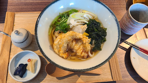 Read moreHighly recommended place for lunch! The staff were very friendly and helpful, many of them spoke English and I saw them explaining the dishes on the menu and how to eat them to the customers. I tried their chicken tempura udon, and it was delicious. The chicken was very tender and juicy, and the portion was just the right size for me. My friend had the unagi (eel?) with rice set and also enjoyed it. Another plus was that it was definitely less crowded than the busy street in front of Dazaifu Tenmangu Shrine, and we got to enjoy our lunch in a...