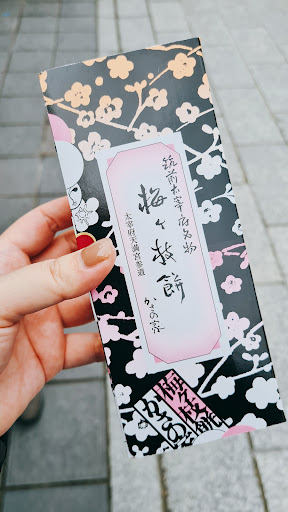On the street leading up to Tenmangu shrine (天満宮), you will see plenty of shops selling umegae mochi. We picked the mostly recommended teahouse to enjoy this local delicacy. The takeout line was really long but luckily we could easily got a dine-in table.
