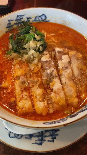 初めて利用しました。 あえて普通の星マークにしました。 国道3号線バイパス沿いにお店があります。 以前から気になっていました。 今回、黒船担々麺と黒ごま担々麺、半チャーハン、水餃子(5個入)をいただきました。 辛さを選べるようで、黒船担々麺は普通の辛さ、黒ごま担々麺は少し辛めのものにしました。 私が食べた感想はスープとしては、担々麺としての辛さと美味しさを感じましたけど、麺が完全に湯切りされてないようで、スープとうまく絡まなかったのが、残念でした。 あと、半チャーハンについては、味が薄かったですね。たぶん、担々麺に合わせての味付けだと思いますが… 水餃子については、いい茹で具合で、提供された酢醤油とマッチしていて、とても美味しかったです。 ここまででしたら、星4つくらいでしたけど、 若いスタッフさんの愛想ない接客など気になりましたので、星3つです。 接客以外でしたら、他のメニューをいただきたいので、また利...