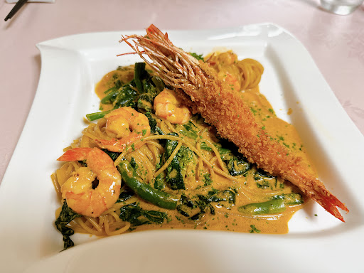 Read more初めて行きました。駐車場ないと思いコインパーキング探してたら、近くのとこは満車。諦めて店に戻り聞いたら横の屋根があるとこに停めていいと言われ、ほっとしました。他にお客がいなくて助かりました。 期間限定メニューで牡蠣のクリームパスタとオマールエビのクリームパスタにひかれたけど、今日はメニューにあるエビのクリームパスタ、エビフライのせにしました。 しかもパスタや、ピザだとルンルンランチセットをプラスしたら4品プラスで2220円のところ450円になるんだとか、、、。エビのパスタはエビ満載で濃厚なクリームソースにエビの味も加わり濃いけど美味しかったです。自家製パンを残ったソースにつけて食べました。デザートもいくつもあり、一口サイズとかじゃなくて大満足。今度はピザやハンバーグも試したいなあと思いました。ご夫婦二人でされてるのでお客が多い時は多少時間がかかるかもなので、、、。予約がおすすめ。月曜が定休らしいですが、月に3回くらいは月曜もランチだけされてるそうです。夜は今...