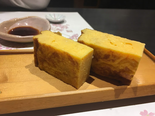 麒麟山の冷や🍶(日本酒の辛口)→特上握り🍣→エビの頭と尾の焼いたの🦐→茶碗蒸し→白州のハイボール🥃→追加の握り🍣(タコ.アオナ)