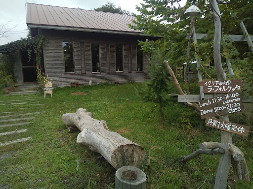 今日はぁ〜私のぉ飛び石4連休のぉ2日目ですってぇ〜♪何故にぃ〜?4日がぁお仕事でぇ5連休でぇ無いのぉ〜(笑) 家内とぉお二人様でぇ江別市西野幌のぉ〜素敵なレストランへぇGOですってぇ〜♪予約してだぁ~! 到着→ 場所はぁ「野幌野菜直売所」のぉ〜近くでぇポツンとぉ一軒家的だけどぉ〜車だとぉ便利なぁ立地ですよぉ〜♪ こちらはぁ〜人気中華料理店やらぁ人気蕎麦屋やらぁ人気喫茶店やらぁ沢山のぉ〜グルメ地区でぇこちらのぉレストランもぉ〜人気店ですってぇ〜かぁ~♪ 入店→ 店内はぁ〜雰囲気抜群でぇ〜GoodGoodでぇスタッフのぉ〜皆様もぉ感じ良いのぉ!グッズのぉ販売もぉ〜素敵なぁ〜♪ 注文→ 家内とぉ私はぁランチコース4300円税込 ネット検索したらぁ〜私達みたいなぁ年寄りはぁコース選択がぁ無難? お二人様でぇ8600円のぉ〜ランチだけどぉ〜(笑)ランチコース始まる前にぃ私がぁアイスカフェラテ頼んだからぁ超えた! ビジュアル→ 写真投稿してるぅ~からぁよろしくお願い致しますよぉ〜♪ 前菜→ シャドークイーンのスープがぁ旨い! 白レバーのムースがぁ旨い! キノコとゆり根のマリネがぁ旨い! 道産ホタテのカルパッチョがぁ激旨い! ゆっくり芋のマッシュがぁ激旨い! 小エビとアスパラのマリネがぁ激旨い! 自然卵のオムレツはぁ普通かなぁ? 生ハムとグリッシーニがぁ旨い! パン→ 亜麻の実と道産小麦の自家製パンがぁ熱々でぇGoodだぁよぉ〜♪ スパゲッティ→ アンチョビトマトソースがぁ旨いのぉ〜麺がぁ私好みでぇ〜♪ ピッツア→ 4種のチーズ味がぁ〜チーズがぁ最高にぃ旨いしぃ〜生地がぁパリッパリッだけどぉ〜小麦感抜群でぇ〜♪ 道産鶏のハーブソテー→ お肉がぁジューシーでぇ皮がぁパリッパリッですってぇ〜かぁ~♪道産野菜のサラダもぉ〜GoodGoodでぇ旨いわぁ! オレンジのパンナコッタとアールグレイのジェラート→ 旨いレストランのぉ〜デザートはぁ何処もぉ〜旨い?はぁ〜ぃその通り! 追伸→ 観光客のぉ〜内地のぉ皆様にぃお勧め! 道産子のぉ〜私がぁ太鼓判?家内はぁ新潟県だからぁ! 店内はぁ広々でぇ〜駐車場がぁ広々だからぁ予約してだぁ...
