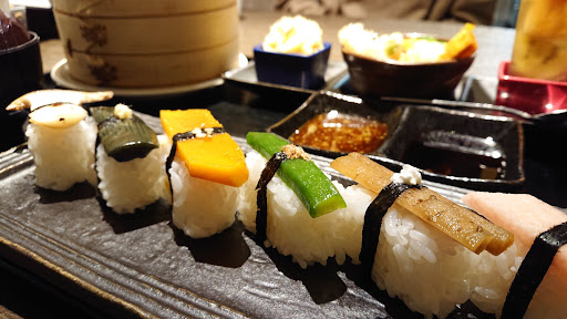 いやいや美味しいんだわ👍 長芋、エリンギ、オクラ、ゴボウ、那須、それぞれ味付けされたものが寿司ネタになっていてどれもとても美味しくて👌