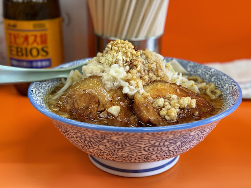 The ramen came with a lot of bean sprout with cabbage, garlic was apparently 15g, it was more than table spoon full but I enjoyed it. The soup was tonkotsu with soy sauce flavor, it is fatty and salty with strong garlic taste. I liked it(I would not finish the soup though. The noodle was “Washi washi - kei”, meaning thick, rough and wrinkly, it goes perfectly with the very strong soup. Cha Shu was think coin shape, it was very meaty and fatty, it does not get lost in a lot of toppings.
