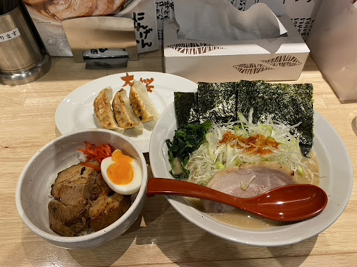 Read moreいつも利用している大桜が海老名にできたということで 早速食べに行ってきました。 何時も頼んでいるのりネギ玉子の油抜き味薄めでは なく、今回はシンプルにネギラーメンとざく丼 (ご飯少なめ)餃子3個の定食スタイル。 数年前ならラーメンざく丼餃子(5個)と 頼んでましたが、寄る年波に勝てず少なめでも 満足できるメニューを注文しました。 ここでもスープは店内で大きな寸胴で丁寧に作られ、 麺はオリジナルの中太麺で往年の大桜を彷彿とさせる クリーミーな豚骨スープで大変美味しく、 ざく丼も餃子も非常に美味しかったです。 店内は通常の大桜よりもかなり広く、 駐車場も車がたくさん駐められるよう台数もあり、 店舗奥には4t車サイズが駐められる駐車枠も ありました。 近隣に物流拠点等が多く高速の入口が近いことも あるのでトラックドライバーさんへの配慮でしょうか? お会計はキャッシュレス決済、QR、クレジット等現金以外でも多種多様な決済に対応しております。 横浜や川崎に出店が多い大桜ですが、 海老名地域でもこの味で地元のお客さん...
