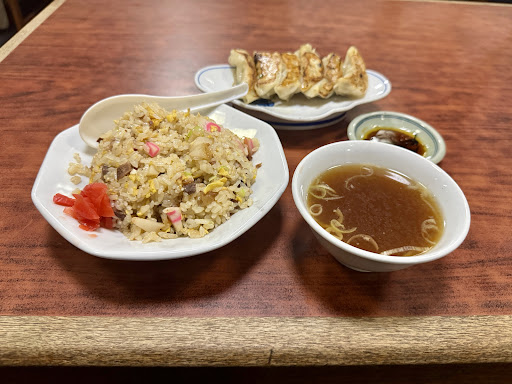 ノーゲストでしたのですんなりテーブル席へ案内され、チャーハンと餃子、瓶ビールを注文しました。