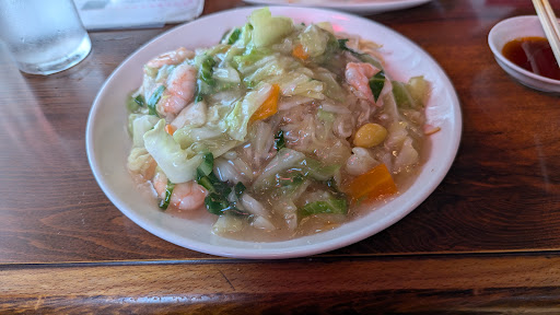 Read more前からココはチェックしていて、念願の訪問です♪ 中華丼を注文です🫡 うん、普通に美味かったです😆 初めてお伺いしましたが、ハズレではなく、普通の安定感あるヤツってところでしょうか⁉️ 変な特徴無しの優しい味付け、年配の方や子供でも安心して食べれるヤツですかね👌 具材にエビとウズラは嬉しいですが、珍しくピーマンと銀杏があり、コレは好みが分かれそうかな⁉️ 豚肉が多めでした😍 あ、スープも優しいヤツでした♪ ココは出前やってるみたいで、カブが行ったり来たり、帰ってきた‼️あ、また出てった‼️出前が繁盛している様デスネ🏍️ 近所にあればビールと〜って使い方が良いのかなぁ🍺 機会があれば他の物でも〜って思いました😉 全体的に値段安めですが、炒め物系の単品と定食の差額が気になりま...