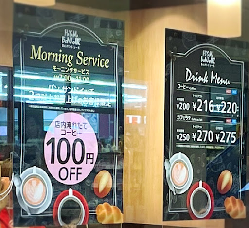 モーニングサービスで、パンやサンドイッチを2個買うとコーヒーが100円offになります~!!