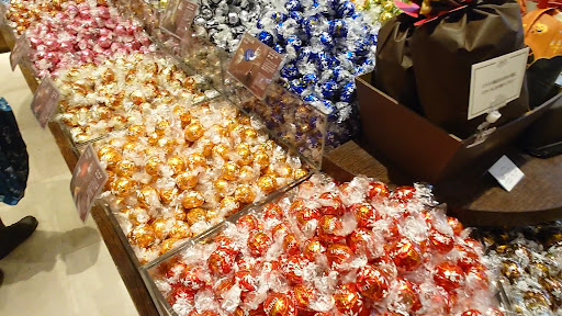 店舗に入ると、まずスタッフさんが試食用にとリンドールのお薦め味の一口チョコレートを頂けるサービスがあり、目の前には常時15種類以上の味が楽しめるリンドールチョコが専用スペースに種類別に山積みされています☆