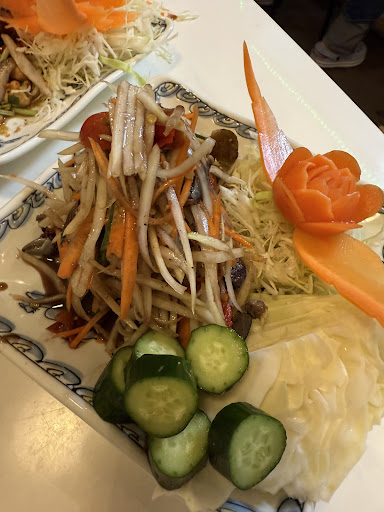 My go to dish is Som Tum with fermented fish sauce and sour olives so bold and flavorful! My husband always gets the Spicy Grilled Pork Neck Salad absolutely delicious. If you’re into real Thai food and warm, welcoming vibes, this place is a...