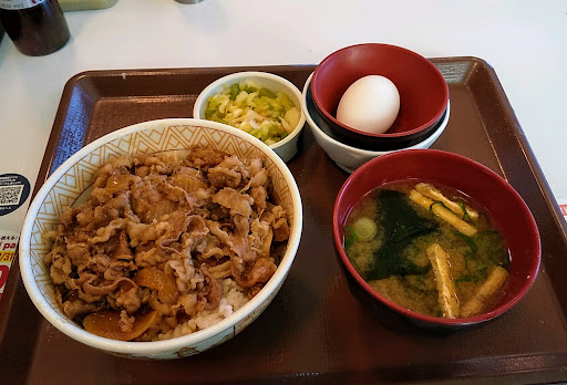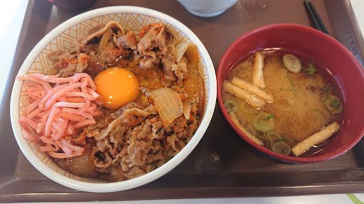 Read more2020.12.31 約2年ぶり位の訪問(^^;)?。 牛丼(並)をつゆだくと3点セットの計520円を注文(^^)v。 以前は吉野家が圧倒的に美味しく感じていたのですが最早レベル的には遜色が無くて好みの問題だけのような気がします(゜-゜)?。 お新香だけは吉野家の方が断然美味しいと思いますが・・・😅⁉️。 あとお会計はセルフで出来るようになっていたんですね()?。 提供も早いし特に不満も無く美味しく頂けました(^^)v!。 ただ、テーブルには唐辛子が散乱していたり、紅生姜の干からびたものが調味料入れにこびりついていたりと衛生面はあまり良くないみたいなので・・...