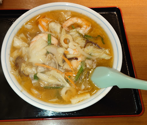 私の知り合いに「正一」と言うじいさんがいるのですが、全く関係ないみたいです😂・・。 過日、田舎から熊本への帰り道お邪魔させて頂きました。「ちゃんぽん」検索でヒットしての立ち寄りです。 真新しい外装・店内は同一系統色の落ち着いた色使いで天井も高くまた装飾品もシンプルで清潔感があります。お昼時でもあり少々の順番待ちはありましたが入口付近の少人数用テーブルに落ち着けました。お茶や水などそしてお勘定もセルフです・・との事でした。早々元気な仲居さん?へ「ちゃんぽん大盛」をお願いしました。 やって来ました~~私の「大盛ちゃんぽん」~~‼️🤣。第一印象は「デカ~~↗️‼️🤣」でした。大盛だからかも知れませんが、嬉しくなる大きさです。野菜は口当たりの良さそうなキャベツと控え目に入ったモヤシ、人参・玉葱・竹の子の千切り?木耳・ニラも入ってます。練物は竹輪とカマボコ、海鮮はイかが丁重に包丁を入れてあり(なんて言うの?)沢山見かけました。豚コマ(豚バラかも?)も結構入ってます。麺はちゃんぽん麺よりやや細い中華麺風です。スープは中華屋さんのスープ‼️🤣(鶏ガラかな?)と言う感想が一番、味付けは私的には丁度良い感じです。器も大きいし内容量が多いからか、なかなか冷めず最後まで温かく美味しく頂きました。全体的に丁重に仕上がった中華屋さんのちゃんぽんと言う感じでした。 回りのお客さんは思い思いのメニューを美味しそうに食されていました。私も気になったメニューが有りましたので、次回は他のメニューにも挑戦しょうかな~~と想いを馳せつつ帰路に就きました。 ついでですが営業時間の変更が張紙してありましたので写真を添付しておきます。昼1100~1330(入店まで)、夜1700~2030(入店まで)水・木定休日の様です。 長くなってスミマセンでした。...