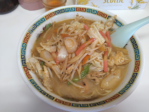 今日は、日頃から気になっている武双ラーメン🍜に来ました。店内2入ると田舎にある 落ち着く店内 着席しオーダーを 友人と二人で行きまして 友人は、味噌ラーメン、 私は、野菜炒めラーメンをオーダーして楽しみでワクワクして待っていました。 料理が運ばれ第一印象は、 濃ゆいラーメンな感じして スープから一口うーん(゜-゜) ちょっと思っている野菜炒めラーメンとは、違う・・・・ まず味から全体のバランスか悪いです。 ラーメンが豚骨なので野菜は、普通に炒める位で良いのに普通に野菜炒めの味付けになっている 胡椒、何かしらの味付けのたれ、トドメのウスターソース これでは、ラーメンもウスターソースの味になりソースラーメンを食べてる感じ 豚骨の味も何もしやしない 更にしょっ辛いのなんのたって喉が渇きぱなし水をがぶ飲みしました。 身体に悪い感じがしました。 麺は、中太ストレート麺 で玉子麺で屋台の匂い味がして懐かしかった。 野菜炒めラーメンでは、野菜を炒め味付けは、薄くして スープを損なわない様にしないとソースなどは、全てを 壊してしまうから味が明後日になります。 ちゃんぽんにソースを入れて食べる人もいますが ごく一部です。店の雰囲気、サービスは、アットホー...