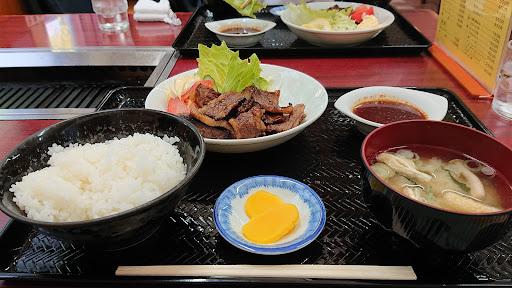 福井県の海近くにある焼肉屋さんです。こじんまりとしたお店ですが、昔からある感じでとても気に入りました。お店は、カウンターとテーブルと座敷がありますが、座敷がお勧めです。ホルモンと上カルビを注文しました。煙は外に出るので気になりません。タレが美味しくて、白いごはんが進みます。わかめスープも熱々で美味しかったです。福井なら海鮮かと思いきや実は焼肉が美味しいとは思いませんでした。馴染みのお客さんも多いようです。焼肉の後の、締めの福井名物のソースカツ丼も最高でした。大人二人でお腹いっぱいいただきました。価格も手頃でぜひ...