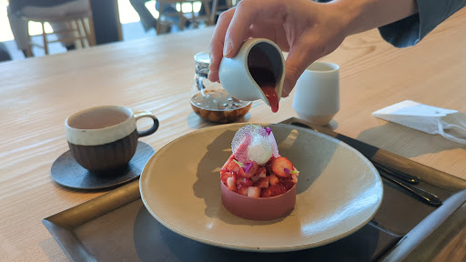 全てが味最高で食感よく、素材を感じるパーツばかり。蕗の薹の飴とか綿あめ感すらあるくらい薄いのにちゃんとふきのとうの味。 ふきのとうのソルベとチョコレートアイスも相性抜群でぺろり。 本当に全部が美味しい!