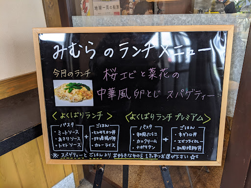 レストラン「みむら」という店でランチしてきました。和風の構えの立派な店で、お昼時なので店内はほぼ満席です。 待ちの客がいたけど、すぐに空きますからというウェイトレスの案内で待機します。 テーブル席、小上がりお座敷席などもあります。カウンター席に案内されます。 この店のウリは、自家製の生パスタを使ったスパゲティとオムライスらしいです。デカ盛りでも有名です。ウェイトレスに聞けば、普通でも大盛りの感覚なので小盛りでいいかもとのことです。食べられるだろうかと不安になります。で、頼んだのは和風きのこスパゲティの特盛を注文します。 ほどなくやってきました。量が多い、皿自体もデカイです。両手じゃないと持てない大きさ、と言えば皿のサイズがお分かりでしょうか。見ただけで食べ切る自信を喪失します。特盛は1kgです。ちなみに普通盛でも450gだそうで、普通でも多めです。 パスタは柔らか目で、アルデンテとは程遠い腰のない仕上がりになってます。 食べても減っていく感じがしませんが、なんとか完食できました。 メニューにはこんな凄いのもあります。 メガ盛り... 恵那の大食いの聖地「みむら」と書いています。 どんなものか見てみたい、ということでネットの画像で紹介します。 ギガミートスパ メガ・パスタ 皿ではなくこれはもう鍋です!!。 ネットによれば重量1.5kg!! 普通の店なら一人前は100g程度だから、とても食べきれる量ではありません。特盛を完食した自分も完食できる自信がありません。 ちなみに定食ロースカツ天国なるものもあります。 厚さ3cmはある分厚いロースカツが5枚!!も乗ったソースカツ丼です。 これは「ロースカツ天国」というよりも「ロースカツ地獄」ではありませんか!? どちらにしてもデカ盛りというすごい世界があります。これだけ人気があるのは、やはり量を求める人が多いということなのでしょうか? 「みむら」を一言で評価するなら”デカ盛りB級...