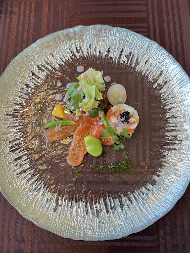 ◦ アミューズ:穴子の燻製 ◦前菜1:蝦夷アワビと冷製ラタトゥイユ・バジル、バルサミコのソース ◦ パン:ドライトマトとアンチョビのペースト、EXVオイル、岩塩 ◦ 前菜2:フォアグラのポアレと国産アンディーブのムニエール ◦ 魚料理:スズキのポアレとそのムース・オリーブとトマトのソース添え ◦ 口直し:赤紫蘇のグラニテ ◦ 肉料理:飛騨牛ヒレ肉のグリエ・赤ワインソース ◦ デセール:ベリーのジュレ、ヨーグルトアイスクリーム ◦...