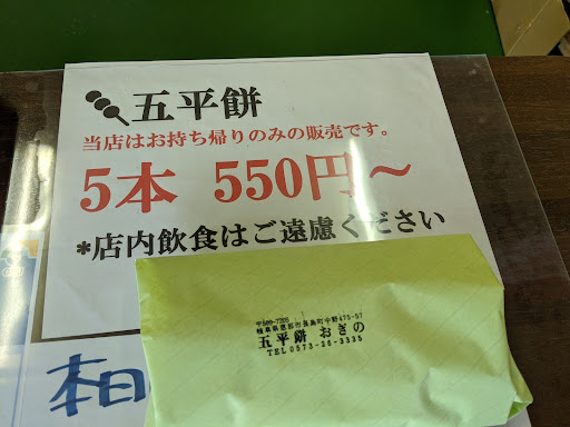 ※2022年の口コミ 恵那中津に和菓子ツアーをしにきた際、いつも寄っている「あまからや」が完売していたので、前から気になっていた「おぎの」に来てみました。五平餅5本で550円、それ以下の本数売りはしていないみたいです。5本は多すぎるなぁと言うのは感じてしまう。 また、イートインは無しです。 肝心の味ですが、あまからや同様に非常に美味しいです。恵那ならではの胡桃タレがしっかり付いていて、香り、食感、焼き加減、どれもあまからや同様に良いです。 駐車場は店の前で2台はいけます。支...
