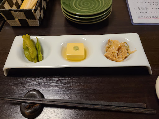店は綺麗です。店の前に五台程の駐車スペースが有ります。 料理は1人一万円のコースで頼んだのですが、一品出てくるのに10分位かかりました。料金を合わせるために頑張ったのは分かりますが、全員が牡蠣を好きとは限らないし、イクラを食べれない人だって要るのに、〆でイクラの乗ったちらし寿司はあり得ないです。結局二時間以上も、ダラダラと料理は出てくるは、茶碗蒸しに牡蠣を入れたせいで固まらずに卵スープみたいに飲み物になってるゎ、普通なら1人づつ店の人が料理を配るのが普通なのに、端から客が料理を回すわ、飲み物頼んで20分以上来ないから乾杯も出来ず、乾杯したところで、お通しさえ無く、刺身が2品目に出てきた時点でおしぼりさえなく、一時間位したところでサラダが出てくるわ、順番や段取りの悪さに呆れて、最後の方にご飯が出てきた時にはおかずは無いし、余りのテンポの悪さに半数弱の人は次の店に行ってしまって居ないのに人数分料理を運んでたのには驚きでした。 結局三時間以上滞在して、食べた感は全く味わえませんでした。 ただ、数人で飲んで食べるのには、高級で雰囲気も良い店なのでしょうが、海産物を嫌いかは事前に言っと...