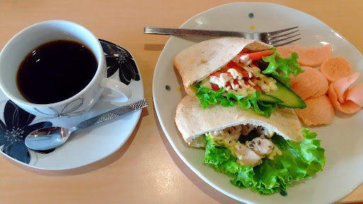 ããŒãªã³ã°ã®éäžã«å¯ããæ°å°ãªãåºã§ããã³ãŒããŒã飲ãããªãäœåŠã§ãè¯ããšã¯æããªãã®ã§ãã©ãããŠãçµãããŠããŠããŸããŸããåºã®å è£ ã¯å°å³ã§ããå¿ãããã£ãæ¥å®¢ã奜æãæã¡ãŸãã257ã«ãŒãã§ããããå§ãã®åºã«ãªããŸããå€ã岩æçºã®è¡äžŠã¿ã®äžã«å ¥ãããã«ãäŒæ¥ã¯èгå ã®æ¹ãå€ããªãè³ãããèŠããŠãããšæããŸããåã¯ãã€ãå¹³æ¥ã«è¡ãã®ã§ç©ãããªæéãéãããšãã§ããŸããã³ãŒããŒã¯æšæºãããå°ãæ¿ãç®ã§ããé§è»å Ž...