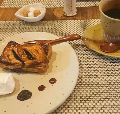 Very tastefully presented café-restaurant, with a few ceramic items and clothes on sale too. Reasonable coffee from espresso machine. Tasty food. I had a nice "hamburg" (burger without bun) and rice, and a glass of red wine in their lunch and drink deal... approx. 1300 yen if memory serves. Nice area just off entrance, looking out through the window, with impressive old wooden beam type flooring.. like railway sleepers. View when I went .. Tuesday 3 March.. was trees and loads of snow on ground.. not unpleasant. Couldn't see what the "ground" was on account of the copious amount of snow.. maybe just a stretch of grass. Spring and summer might be lovely, positively bucolic even. There's a stream running nearby, which isn't quite visible from inside. /// Friendly service....