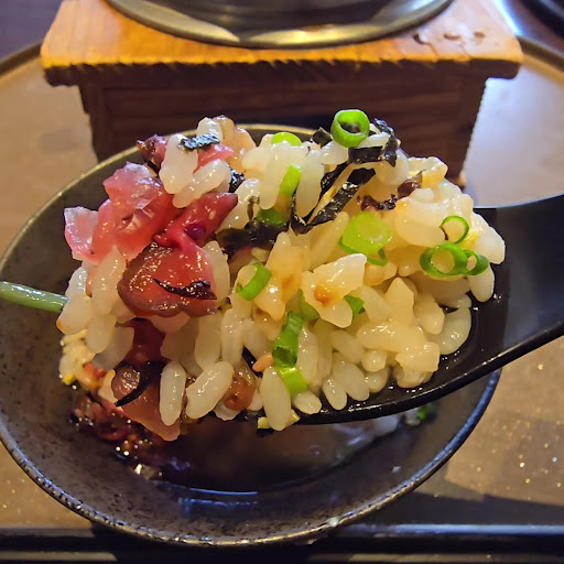 Ichie specializes in so called Kamameshi dishes which loosely translates into kettle rice. But there are lots of other dishes available, too. The setting is relatively high end, mostly in small rooms shared by at most 2 or 3 parties. Overall this is a large restaurant which can probably seat more than 100 persons but it is popular and does get busy. Overflow parking is available in the next door...