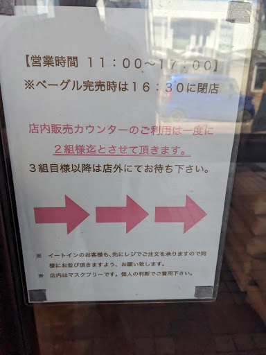 Read moreずっと食べてみたくて気になっておりようやく食べる事ができ、大変嬉しかったです。ベーグルはあちこち食べてますがオーガニックは良いですね。硬くなくて食べやすく、中もキメが細かくてふわふわとしていました。お土産にも買いました。イートインでも食べれますが外でランチセットを食べました。 ランチセットは11時から14時限定で880円からになります。ベーグルの種類によりプラス◯◯◯円が追加料金になります。880円の中でベーグルを選び南瓜ベーグルにしました。 ポテト、サラダ、ドリンク、プチお茶菓子セットになります。 どれも美味しくて飲み物は珈琲を選びました。ブラックで飲みましたがスッキリとしていて飲みやすかったです。 他のも食べたいのでまた行きます。 平日の昼ぐらいに行きましたが13時過ぎると品切れになりそうなぐらい絶え間なくお客様がいらしておりました。店内は2組しか入れなく、コロナ対策をされておりました。
