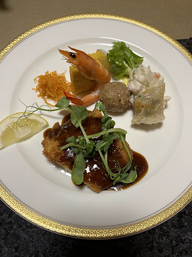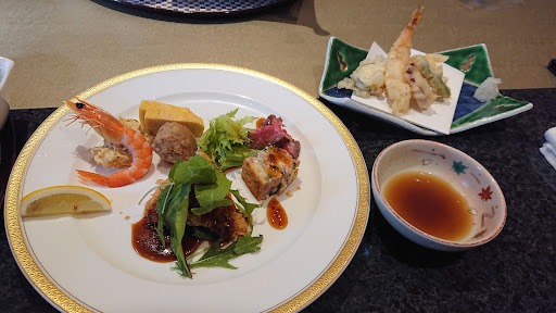 少しずつ多種多様な料理を頂けるのも嬉しい所ですね。 寿司の酢飯は少し酢が強めに感じました。 天ぷらサクサクでとても美味しかったです。