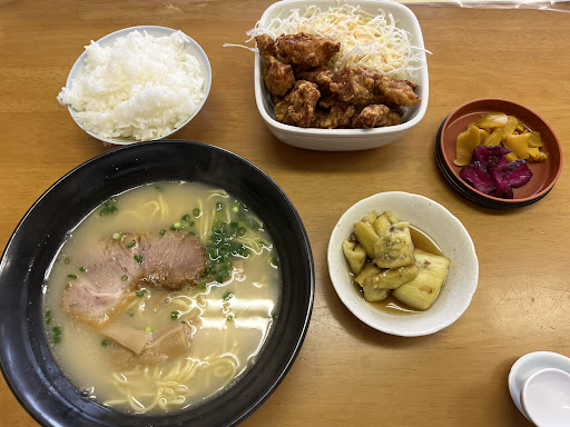 Read more平日お昼時来店。 数名のお客様いらっしゃいました。 ご夫妻?かな?おじいちゃんおばあちゃんでされてましたが、すごく雰囲気良く。 早速、ラーメン定食の唐揚げを注文! 唐揚げは美味しく、小鉢の一品物も美味しく、またボリューム満点!! あっさりとした鶏白湯ラーメン🍜 スープまで飲み干せました。 ラー油少し入れるとまた一味ちがいます。 なんだか高菜があいそうな味でし...