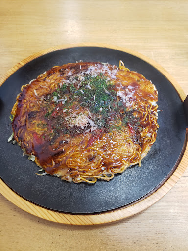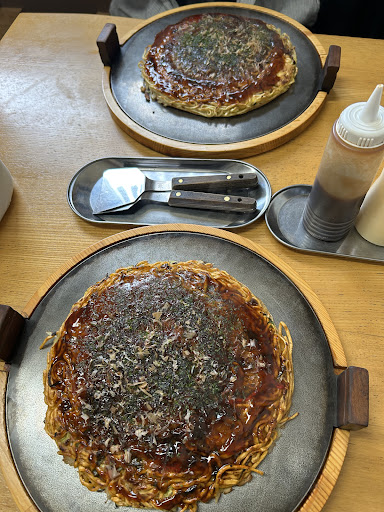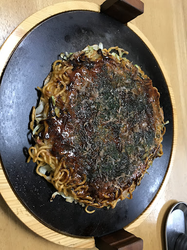 Read more府中焼老舗で今は二代目の娘さんが焼き。丸い鉄板皿で出てくるのが特徴。娘さんの考案らしいです。いつまでも熱々で食べられる(^○^)お好み焼きは丁寧に作ってあり、美味しいです。辛麺変更しても、追加料金無し。おすすめします。地元の製麺所から仕入れられているらしい。麺も美味しかった。是非食べてみてくださいね!食後のコーヒー☕︎サービス🈂️も嬉しい☺️m(_...