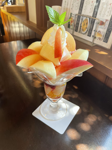 Read more富士山が見たくて旅行に来たのですが、天候は晴天は望めそうに無いので、美味しい食べものを食べるという方向転換で、こちらのお店に。桃のシーズンも終盤、家族の大好物の桃。長い時間列に並ば無いこちらのお店は良いですね、お店のHPから席の予約が出来ると言うのは、本当に助かります。桃の夏季営業は予約のみだそうです。とても良い、嬉しいシステムです。今、提供されている桃は幸茜と言う少し固めで甘さ控えめ、酸味はほとんど無いタイプ。桃のフレッシュジュースは幸茜をジュースにしたもので、優しい味で円やかで飲み易く美味しかったです。桃のパフェは桃とアイスクリーム、1番下の果物など絶妙なバランス。ピザもあっさりとして美味しかったです。帰りに桃を購入してピザっぽいのを作りました。結構美味しかったです。カフェのレジの時桃を購入する事をスタッフの方に言ったら、桃の切り方など丁寧に説明していただきありがとうございました。その通りにしたら大変切り易くむきやすかったです。桃ジャムもあっさりしてて、購入した桃もお値打ちで大きくて新鮮で美味しかったです。夏季の営業は2024年は9月23日までだそうです。お店のHPから予約する方法で席の写真も載ってます。つくづく良心的なお店だと思います。お客さんにお店の前に並んで貰えばお店側は、簡単だと思うけど、予約は客側からすると本当助かるシステムです。 また来ます。来年は他の桃の品種も食べてみたいです。予約頑張ります。 ご馳走様でした。