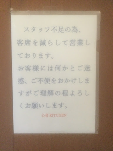 ドア前に「満員」の文字が気になるが、開店前なので、昨晩の置き忘れだろうと勝手に想像し待っていると、開店時間にオーナーが出てきて、前の2人客に、予約で一杯と伝える。 それなら、「○月○日本日は、ランチからすでに予約で満員です」。 と丁寧に書いてほしい。