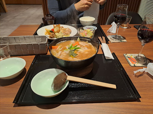 割と新しいお店のようで広々としていて綺麗でした。 メニューを見て普通のほうとうにするつもりでしたが、期間限定のきのこぼうとうも気になり。 お肉などは入っていなくて本当にきのこ尽くしとのことだったので悩みましたが、普通のほうとうはたくさん食べてきたので今回はこちらの限定に。