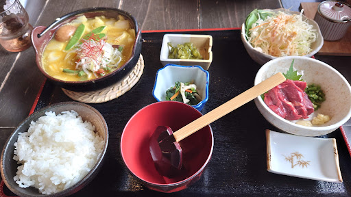 料理ですが、勢いに任せて赤富士定食2,585円を頼んでみました。が、コスト的にオススメできませんな。ほうとう鍋が小さくなってご飯と馬刺とサラダなどがつくのですが、素直にほうとう鍋頼んだ方が良いと思います。馬刺はとても美味しいのですが、これならほうとう鍋と単品で馬刺の追加をするで十分。ご飯はボリュームもありお腹いっぱいにはなりましたが、ほうとう鍋を食べたい方はほうとう鍋にしましょう。