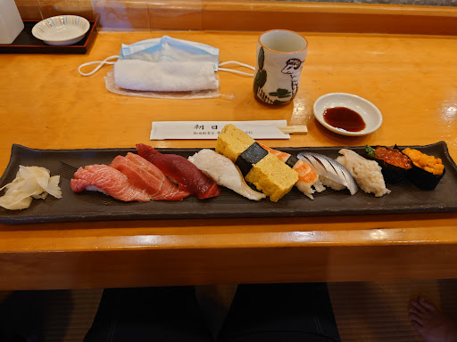 せっかくなので、マグロづくしセットを。 確かに中トロと赤身の間くらいの握りが中心で、レベルが高いと思う。 ただ、盆地一という期待値と比較すると、そこまで言い切れるかなぁ というのが本音。