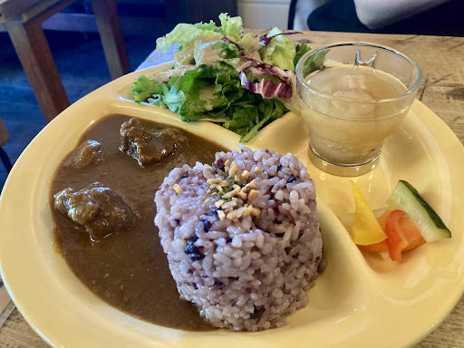 Read more毎年、この時期に私の大好物の桃を買いに山梨に通っています。今年は、ランチをGoogleで農園カフェと検索して幾つか出てきたなかで美味しそうと思ったお店に。11時少し過ぎたところでお店に電話をして予約をしました。お店は少し奥まっていて、ちょっとなれないと通り過ぎてしまいそうな場所でした。 目印はお店の前にファミリーマートがあるので、コンビニに入るように入って、お店の駐車場に止めてください。 店内はそんなに広くはないものの とっても雰囲気が良く 可愛らしいお店でした。入口にもテーブルがあって、テラス席か店内か選べます。お料理はプレート料理で3つありました。私達は1800円のセットにして、主人は今日のパスタ、私はエッグベネディクトを選択、飲み物は桃ジュース、ソルダムジャムのソーダ、ガードショコラ、生チーズケーキを頂きました。 お料理はサラダがついているんですが、凄く新鮮だし お料理も全て美味しかったです。ケーキも何個もでも食べれる‼️と思うくらい美味しかったです。 テイクアウトもしてるみたいで 店内に何人も取りに来ている方がいました。山梨は景色が良いところが沢山あるので、テイクアウトのお料理を持って そういう所で食べて...