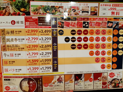 すかいらーくグループのしゃぶしゃぶレストランです。基本的には食べ放題のお店です(※ランチメニューの中には肉が食べ放題ではないものもあるようです) ランチorディナー、平日or土日祝日、60歳以上か否か等で値段がかわります。