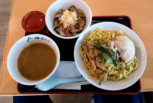 値段は少々お高めに感じる。 麺大盛にしても満足感は低いが、つけダレはお馴染みの濃厚感のあるもので、スープ割も提供されるのはありがたい。 チャーシュー丼は炙った香ばしさもあるが、特に・・・の、印象。この日はお米の硬さが気になった。 この手を食べ飽きた人にはあまりお勧めは出来ないが、個人的にはたまに食べるぶんにはありかと思う。 調味料類にニンニクや黒胡椒辺りは欲しいところかも・・・?。