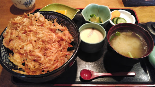 注文したのは桜えびかき揚げ丼1850円。まさに駿河湾、ですね。少し値段が高いかな?と思いましたが、やって来た品は桜えびのかき揚げが2枚入っており、ご飯に対して十分すぎるほどの量。これは1850円でも納得。 サクッと噛むと桜えびの香ばしさが広がり、とても美味しい!ご飯に合わないわけがない。 あら汁や茶碗蒸しもあり、満足できました。 今度はお寿司やお刺身など、別のメニューも注文してみたいな…と思わせてくれる味わいなのでした。