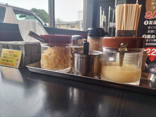 静岡県や神奈川西部でよく見かける家系ラーメンのお店 釣りの際に通り道にあり、気にはなってましたが前を通るタイミング悪く機会に恵まれずでしたが意を決して目的の1つとして訪問 昼時ともあって空席の順番待ち 5番目くらいでした 受付の機械で席の希望や人数を入力して番号の記載のある券を取ります そのまま券売機でメニューを選び、食券購入 名前忘れましたが全部入のラーメンにしました 連れは味玉ラーメンです 少し待つと番号呼ばれてテーブル席へ、最初の水は持ってきて貰えます そこでチケット渡して、家系基本の好みを聞かれます 私はいつもの麺かための後は普通(油、味)で依頼 後、味を醤油と塩から選択です 私は醤油をチョイス 大盛りも無料とのことで大盛りでお願いしました ライスも食べ放題で、こちらは完全セルフのようです あまり待つことなく着丼 見た感じは、しっかり家系 スープを一口、あ、クリーミーな家系で美味しいと思いました 麺はキチンと硬めです 他店に比べてもこちらの方がしっかり硬いかも チャーシューは普通なチャーシューですが、私的には脂身部分が多いかなぁと3枚入ってましたが、殆どが脂身でした 海苔も6枚かな?チャーシュー3枚、鶏卵とうずら卵が、それぞれ1つずつ あ、六三一?六三二?ラーメンって名前でした 今更ながら入ってるオプションの数なんですね…(汗) 少し食べてから、ライスを取りに…麺大盛りだったこともあり少なめにします 食事を進め、ラーメン三分の1程度食べたぐらいで少し味に空き気味に…ライスを挟み、更に食を進めて半分程食べると正直、味に飽きてます… 連れは塩味で麺普通、油、味を少なめにしていましたので少し味見で頂いたところ、かなりクリーミー、私的にはクリープ?とかに近いクリーミーさでした ここら辺が途中で飽きてしまった原因なのかなぁと… 私はですが、家系スープのお店って一口目美味しいと感じても途中で飽きてしまうのと最後まで飽きずに飲んでしまうのと2つに分かれます こちらのスープ、私的には前者でした… 麺や具は全て食べましたが、スープは残してしまいました 完飲して店員さん呼ぶと券を貰えるようです この券を20枚かな?集めると無料で食べれたり、何かしら貰えるようで頑張りたかったのですが大盛りやライスの影響もあって自重しました… 次来る機会あれば、メニューは結構豊富なので、つけ麺や他のを食べてみたいかなぁと思います この値段で大盛り無料、ライス無料というのは大きいなと思います ガッツリ食べたい方には、とっても良いお店かと 結構アチラコチラにお店があるようですので是非お腹減ら...